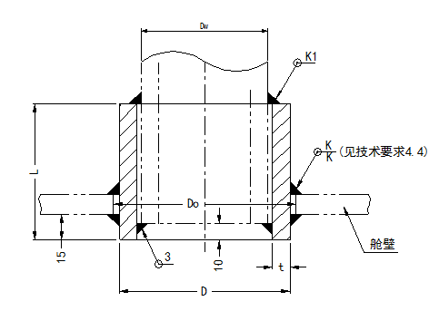 套管外徑D=48mm,壁厚t=5mm的艙壁套管標記為:
